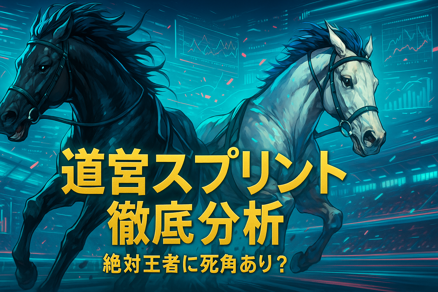 2025年の道営スプリント(H1)は、連覇を狙う絶対王者スペシャルエックスに注目が集まります。しかし長期休養明けで本調子にない可能性も。対抗筆頭は、厩舎から最高評価を得て絶好調のキャンディドライヴ。さらに田中淳司厩舎が4頭出しで展開の鍵を握り、完全復調した3歳馬ベラジオゼロも虎視眈々。有力馬10頭を徹底分析し、レースの行方を展望します。