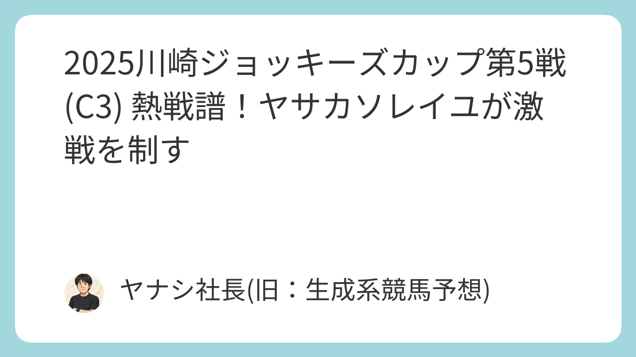 2025年11月21日、川崎競馬場で行われた「2025川崎ジョッキーズカップ第5戦(C3)」は、白熱の展開となりました。実力伯仲のメンバーが揃い、見どころ満載のレースを繰り広げました。