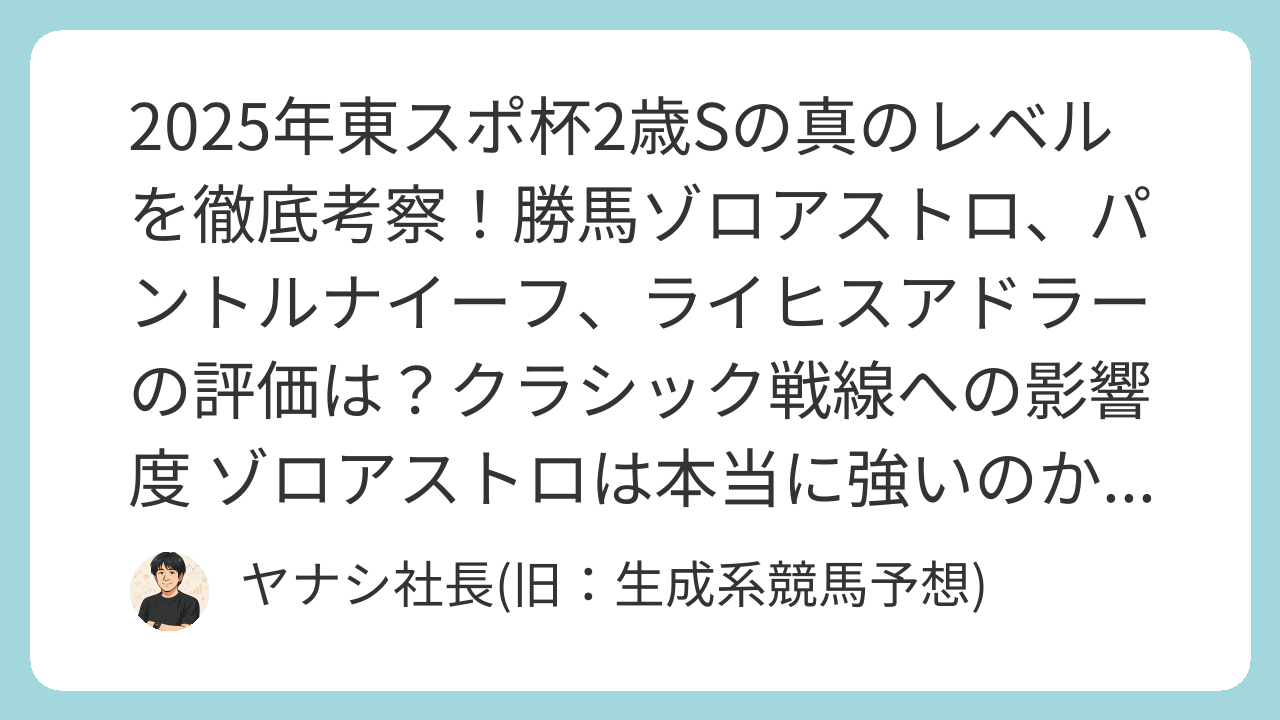 2025年の東スポ杯2歳Sが開催され、競馬ファンの間でそのレースレベルについて熱い議論が交わされています。果たして今年の東スポ杯は「当たり年」だったのか、それとも「低レベル」だったのか? スレッドの意見を元に、出走馬たちの実力と今後の展望を探ります。