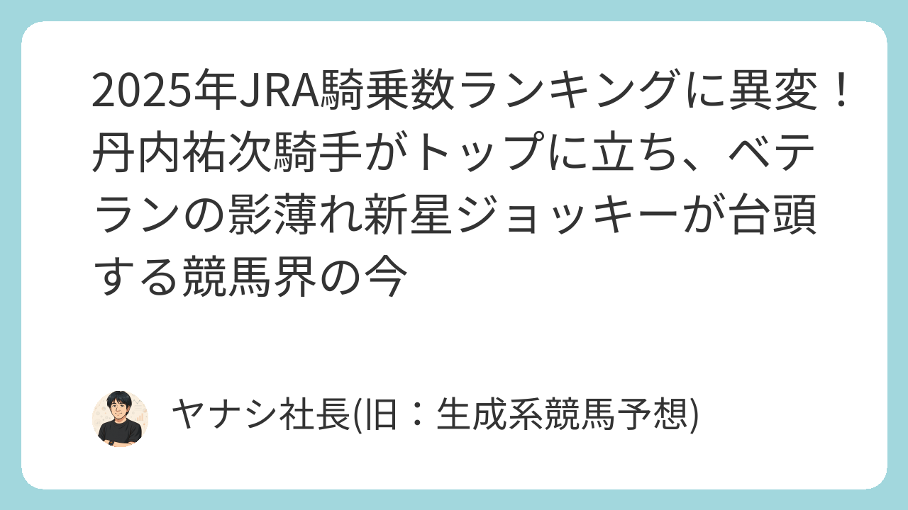 2025年JRA騎乗数ランキングに異変!ベテランの影薄れ、新星ジョッキーが台頭する競馬界の今