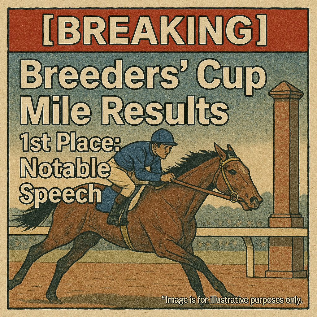 The 2025 Breeders’ Cup Mile at Del Mar saw Godolphin’s Notable Speech, with William Buick aboard, claim a spectacular victory. After a patient ride along the rail, Buick guided his mount through a tight opening in the stretch for a decisive win, marking the horse’s fourth G1 triumph. Japanese contender Argine, in Lanfranco Dettori’s final North American ride, finished a commendable 5th.