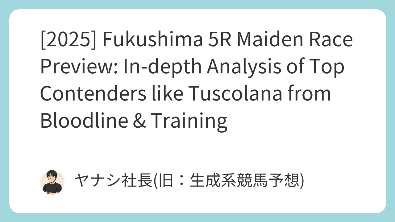 A thorough analysis of the Fukushima Race 5 (2-Year-Old Maiden, Turf 1800m) on November 24, 2025. As a key race for the classic season, we evaluate each horse’s pedigree, training condition, and course suitability from multiple angles. Considering the course’s bias towards front-runners, we break down the potential and risks of top contenders like Tuscolana and Something Sweet, offering our top picks and betting strategies for a winning ticket.