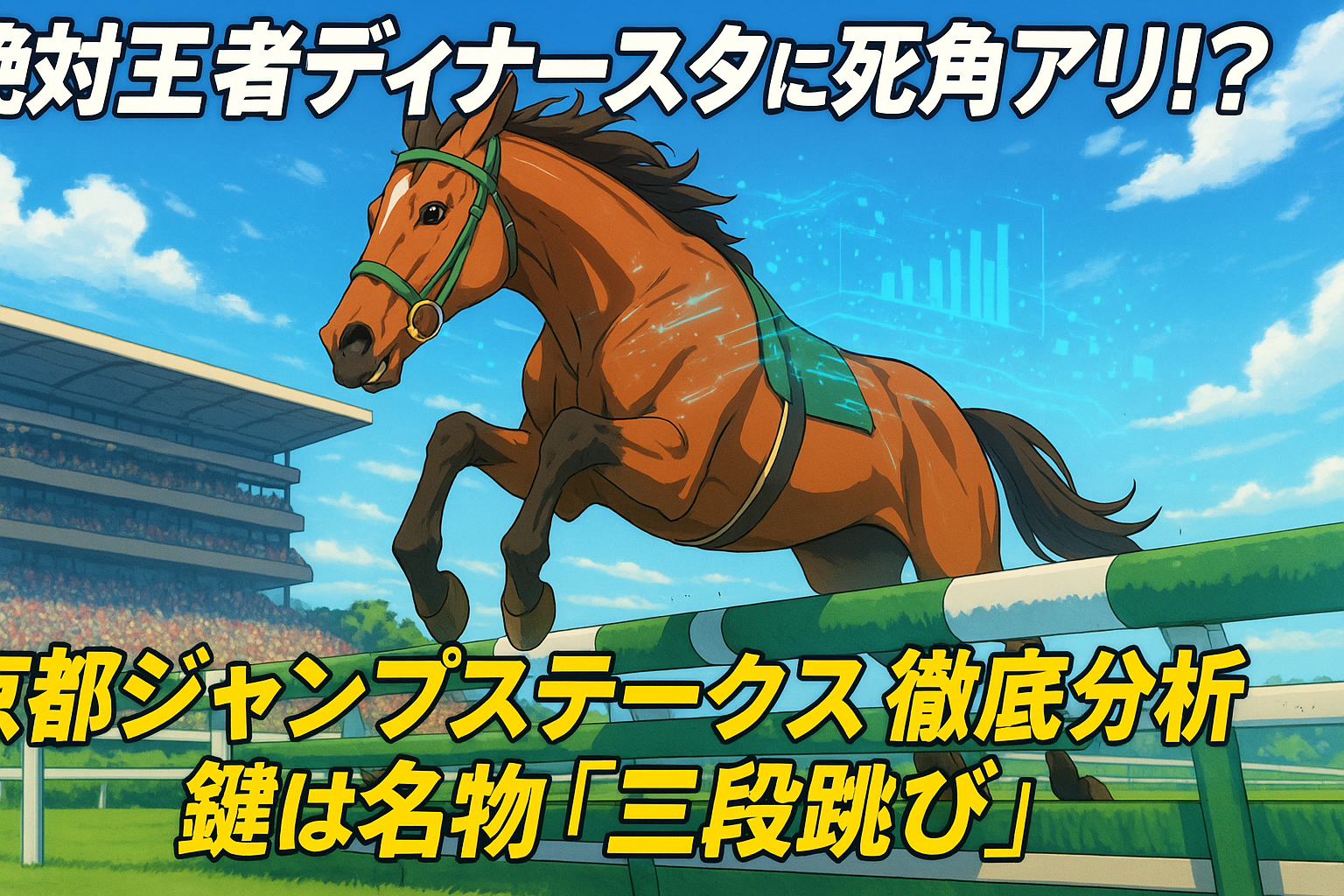The 2025 Kyoto Jump Stakes sees Dinner Sta as the overwhelming favorite at 1.8 odds after a dominant win in just his first race over obstacles. However, a clear vulnerability exists: he has never experienced Kyoto’s signature “Sandan-tobi” (Triple Jump). This article uses only primary data like training reports and stable comments to analyze how this experience gap might affect the race, breaking down all 10 runners to find a reliable key horse and a potential dark horse.