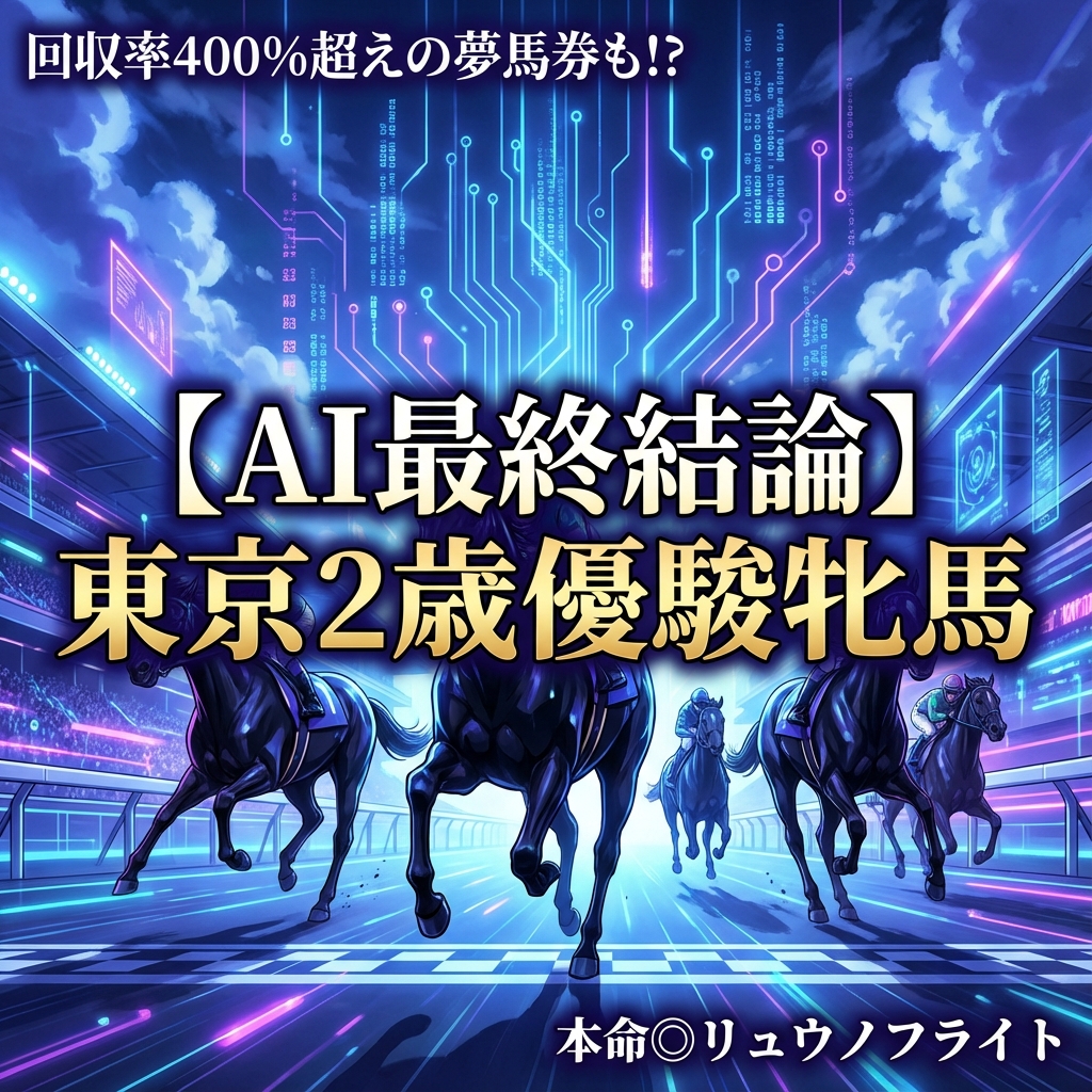 2025年最後の大一番、東京2歳優駿牝馬の本命はリュウノフライトを推奨します。AI算出の勝率はメンバー中トップの32%。12月28日の最終追い切りでは、馬なりでバネを感じさせる動きを披露しており、調整は万全と見てよいでしょう。