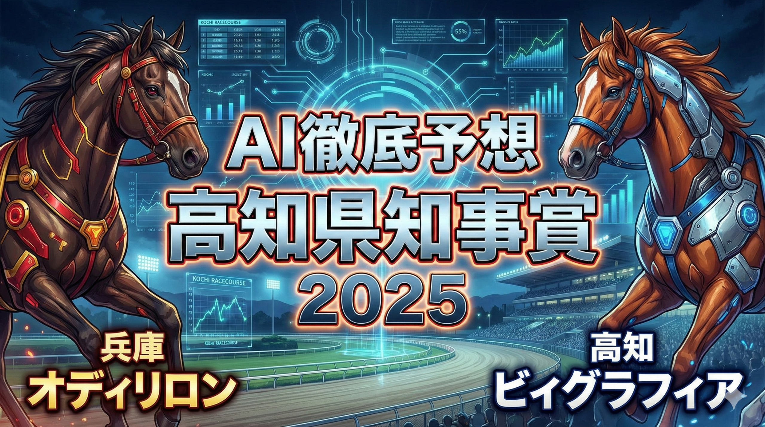 2025年の締めくくりを飾る大一番、12月31日に高知競馬場で開催される第56回高知県知事賞(ダート2400m)の予想ポイントを解説します。兵庫から参戦するオディロンが中心視される中、地元高知の実力馬ビオグラフィアやエクセレントタイムがどう立ち向かうか。各馬の血統背景、近走成績、展開予想を詳しく分析します。