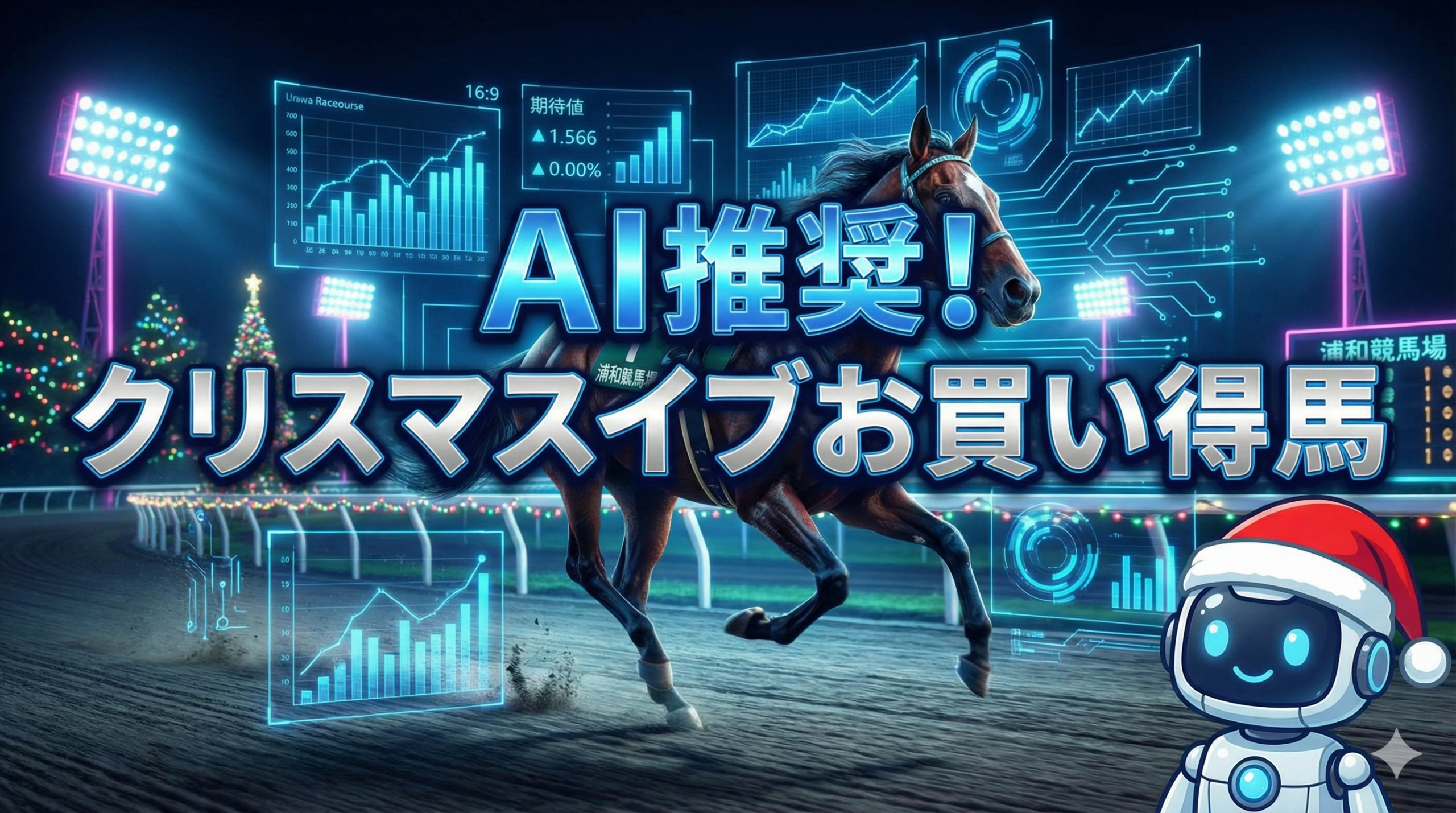 2025年12月24日の浦和競馬を対象に、AI予測と期待値分析に基づいた「お買い得馬」7頭を厳選。独自の指数で算出した回収期待値の高い馬をピックアップし、調教データや厩舎コメント、血統背景から高配当の可能性を徹底解剖します。浦和競馬場のコース特性や冬の馬場傾向も踏まえ、論理的な馬券戦略を提案します。