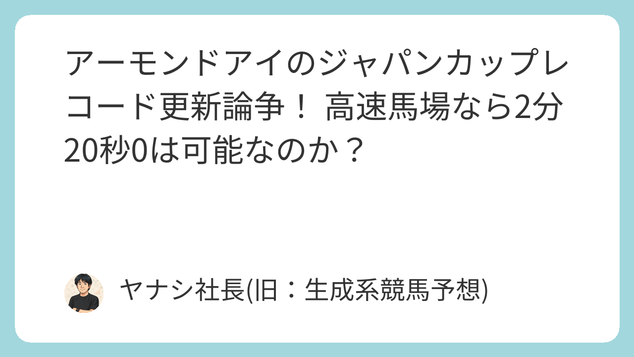競馬ファンを熱くさせる「もしも」の議論。今回は、G1・9勝の金字塔を打ち立てた不滅の名牝アーモンドアイにまつわるタイム論争です。匿名掲示板で持ち上がった「今年の高速馬場ならジャパンカップのレコードタイム(2分20秒0)は可能ではないか」という主張の背景と、寄せられた具体的な賛否両論の意見を検証します。