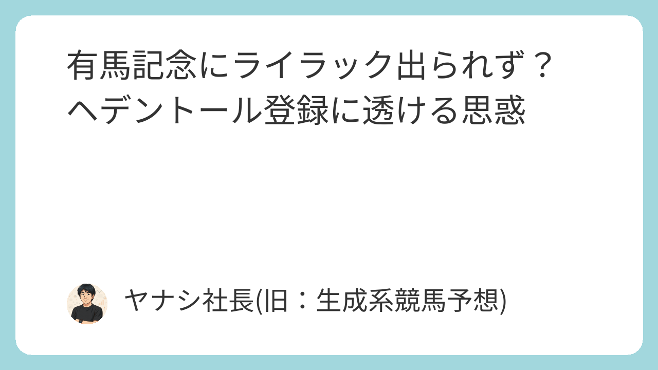 本記事では、この波紋を呼んでいる「ヘデントール特別登録」の背景から、競馬ファンや一口馬主コミュニティの反応、そして今後の有馬記念出走馬決定に与える影響までを深掘りします。