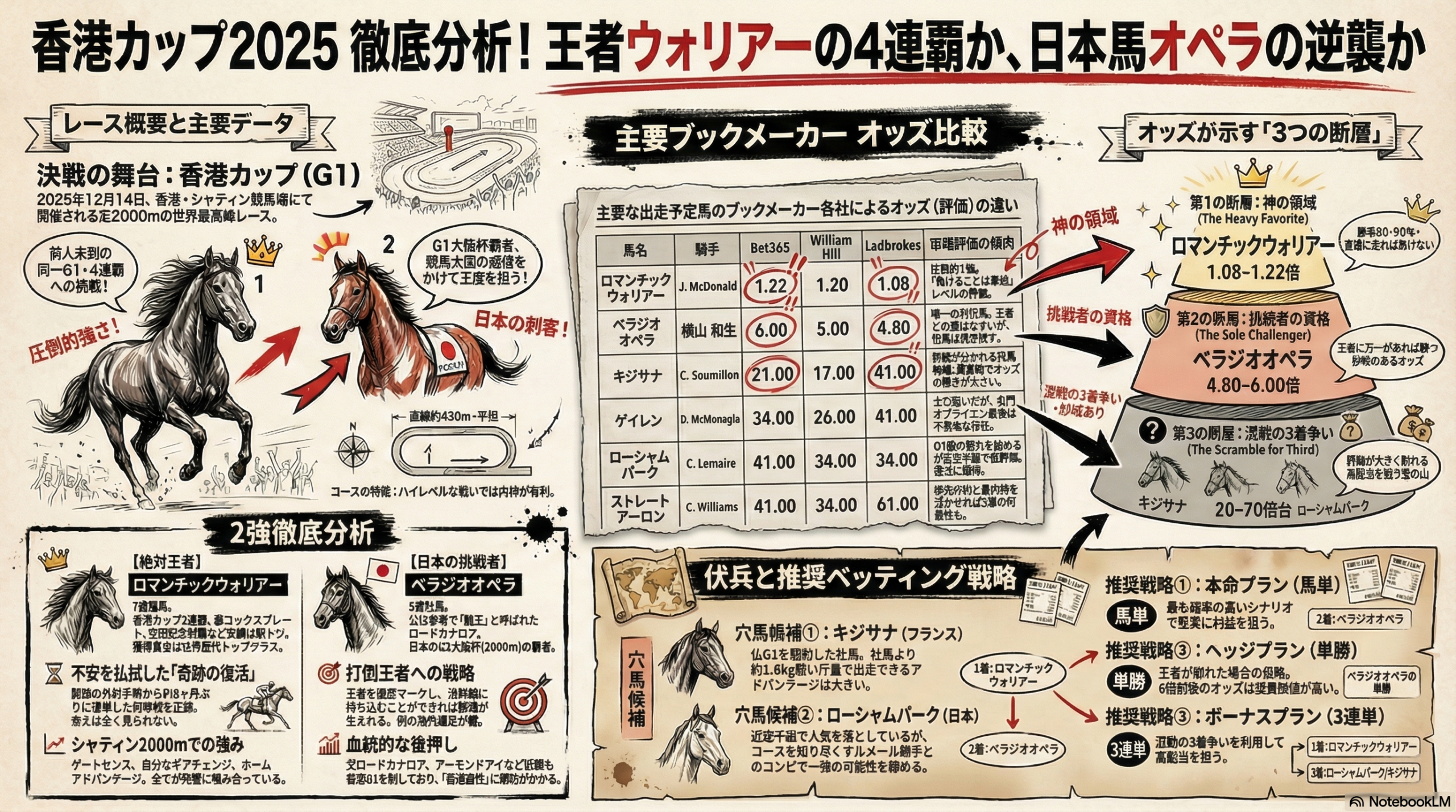 The Hong Kong Cup (G1, Turf 2000m), scheduled for December 14, 2025, at Sha Tin Racecourse in Hong Kong, is set to be a historic event. Local champion Romantic Warrior aims for an unprecedented fourth consecutive victory in this prestigious G1 race. Adding to the excitement, Japan’s G1 Osaka Hai winner, Bellagio Opera, enters the fray as a formidable challenger. This analysis delves into potential betting strategies, informed by international bookmaker odds, to navigate what promises to be an enthralling contest.