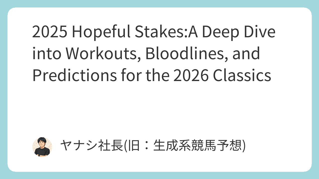 The 42nd Hopeful Stakes (G1) at Nakayama Racecourse is a crucial race defining the future of the male Classic races. Since its G1 elevation, the demanding course has shifted the focus from explosive speed to raw stamina. This report dives deep into course characteristics, bloodline trends, and the all-important one-week-prior workouts to forecast the outcome.