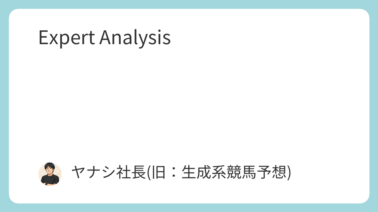 Possesses top-tier ability. His long stride is advantageous on Hanshin’s straight. Despite a slow start in his last race, he recovered to win, demonstrating strong race sense. Gate performance is a concern, but his potential is undeniable.