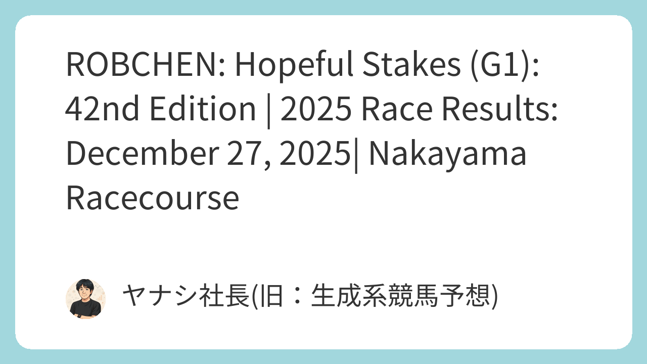 Robchen, ridden by Kohei Matsuyama, won the race as the 7th favorite. While Robchen won its debut race by leading, it adopted a more reserved racing style in this G1 event and achieved a decisive victory in the final stretch.