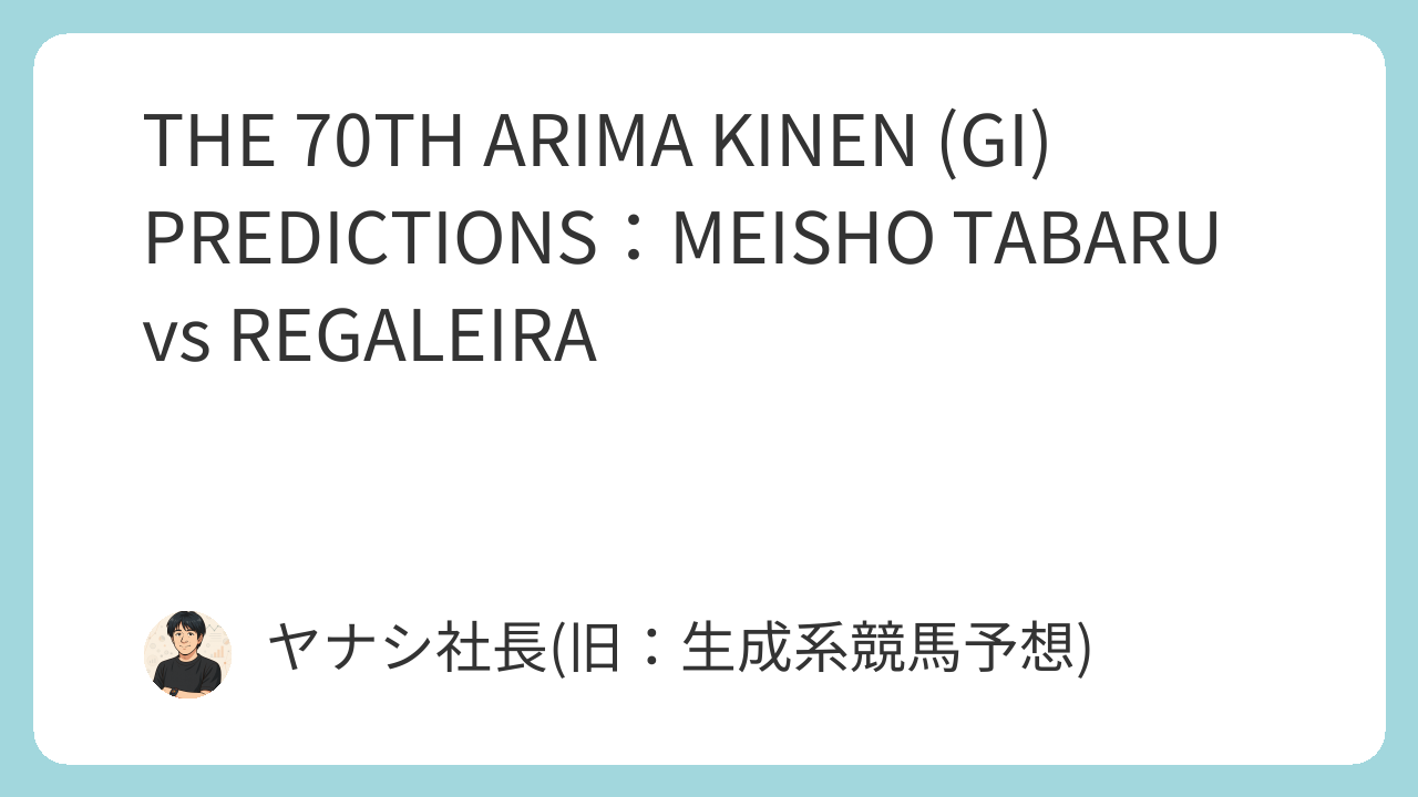 On December 28, 2025, the 70th Arima Kinen (GI) will unfold at Nakayama Racecourse. Meisho Tabaru, winner of the Takarazuka Kinen, aims for a Grand Prix double with legendary jockey Yutaka Take. As the key to the race’s pace, we favor his chances to leverage Nakayama’s short straight and dominate from the front. This in-depth analysis breaks down the key race points, evaluating top contenders like the reigning queen Regaleira and Derby winner Danon Decile.