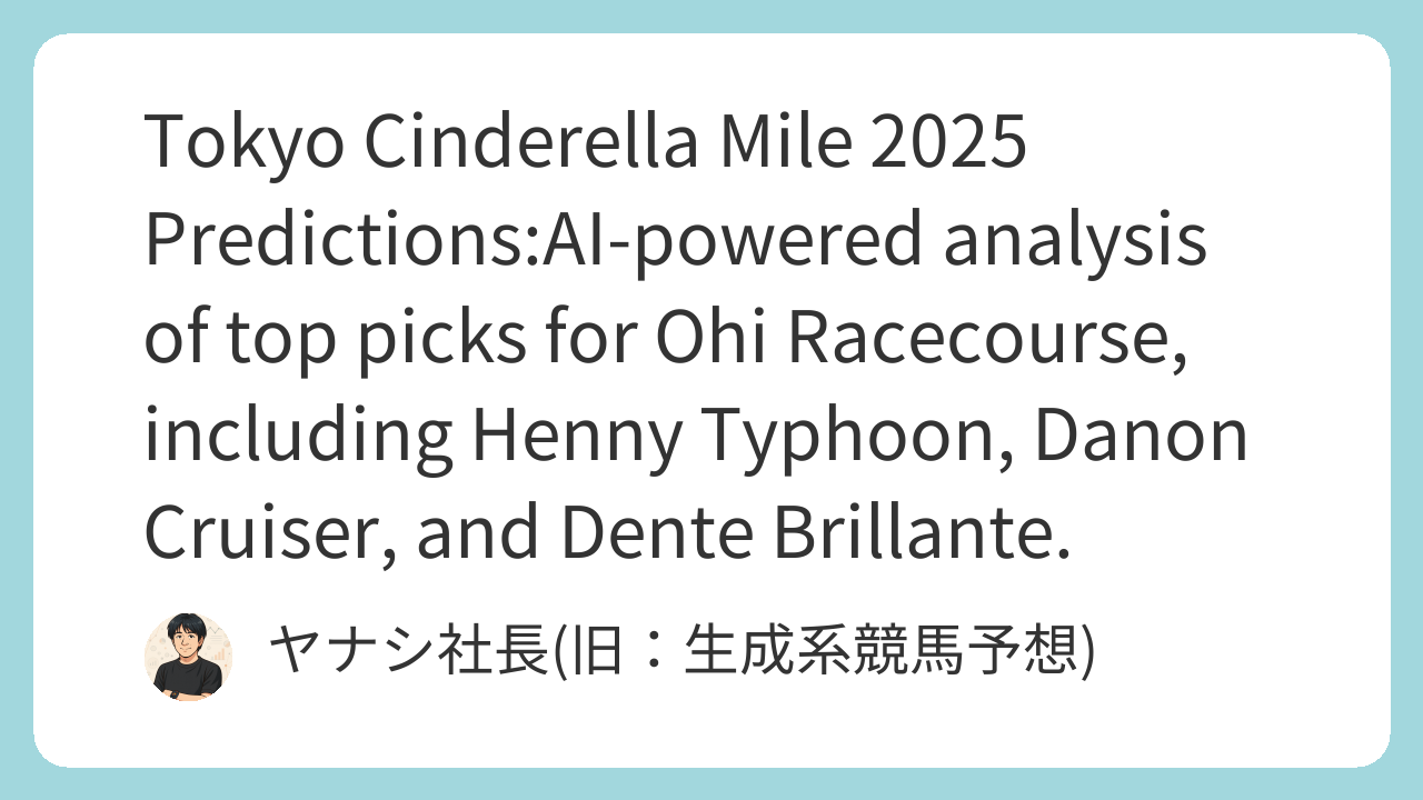 Her condition leading up to the race is “outstanding.” She was put through a strong workout on Dec 21, showing powerful movement. If she can handle the Ohi course, she has the talent to surge to the top.