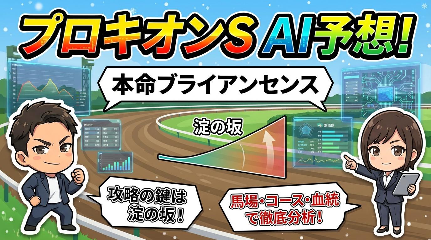 冬のダート重賞戦線を占う第31回プロキオンステークス(GII)。京都ダート1800mという特殊な舞台を、AIが血統・調教・コース適性から徹底分析。充実期を迎えたブライアンセンスと安定感抜群のロードクロンヌを軸に、波乱の可能性までシミュレーションします。