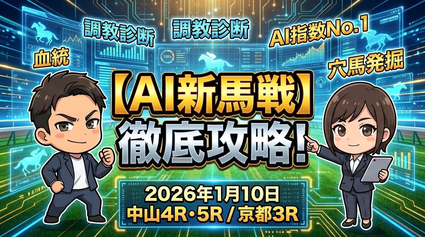 2026年1月10日(土)に開催される3歳新馬戦に向けて、前日である1月9日時点での最新情報と予想のポイントをお届けします。2025年世代(2023年産)の素質馬たちが続々とデビューを迎える中、今週の中山・京都開催でも注目の良血馬がスタンバイしています。調教の動きや血統背景、そしてAI予測に基づいた「狙い目」を解説します。