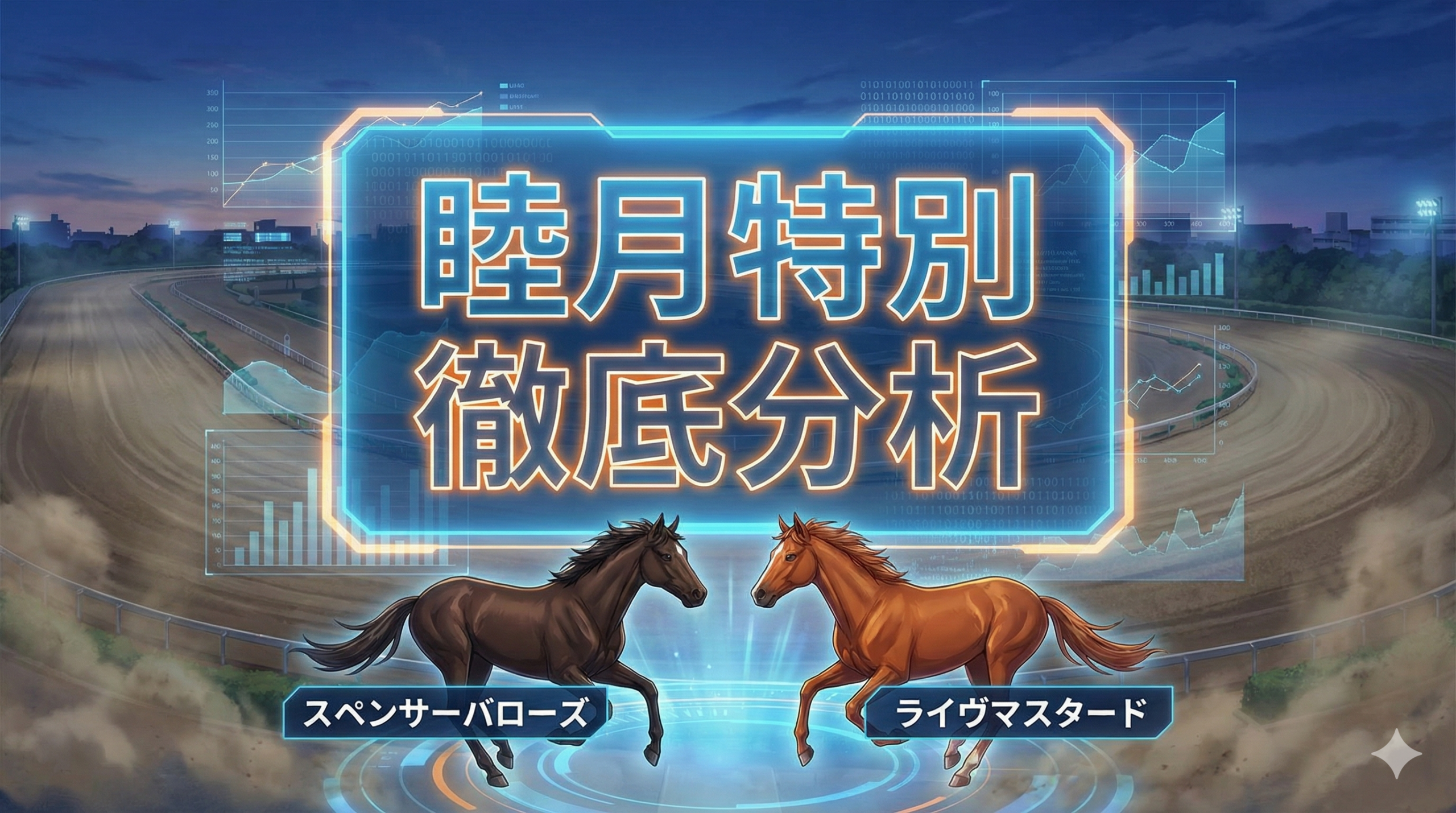 2026年1月9日(金)浦和競馬場で行われるメインレース「睦月特別(B1B2)」(ダート1500m)の予想における重要なポイントと、AI予測データ、直近の調教気配、血統背景を基に注目馬の評価を徹底解説。スペンサーバローズやライヴマスタードを中心に、勝負のカギを握る一頭を紐解きます。