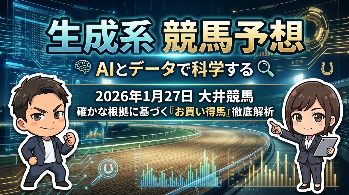 2026年1月27日の大井競馬は、砂厚変更という物理的環境が期待値を大きく歪めています。AIが導き出したこれら5頭の激走に是非ご注目ください。詳細シミュレーション動画を見る