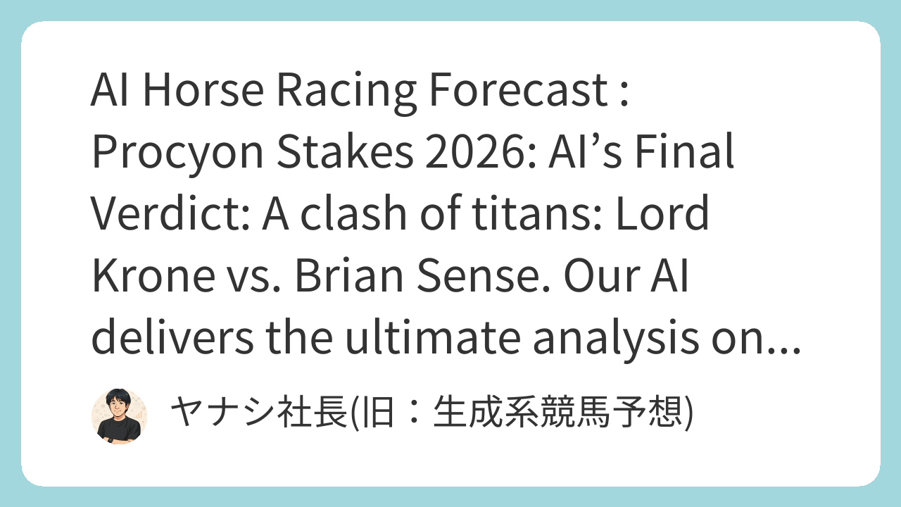 The 2026 Procyon Stakes is a high-stakes battle where “power derived from pedigree” and “peak current form” are the keys to victory. After a comprehensive analysis, our AI confidently selects Lord Krone as the most likely winner.