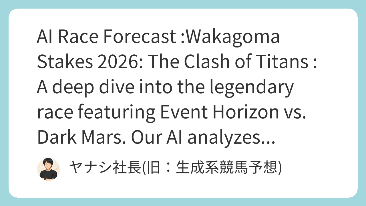 The key to this scenario is Kyoto’s famous “Slope at the 3rd Corner.” The AI’s most probable outcome sees Event Horizon using the downhill stretch to accelerate, positioning himself within striking distance of the leaders at the final turn. The race then becomes a question of how long Dark Mars can hold on, with With Queen and Large Ensemble launching their attacks from behind. This is the “what if” world our AI envisions.