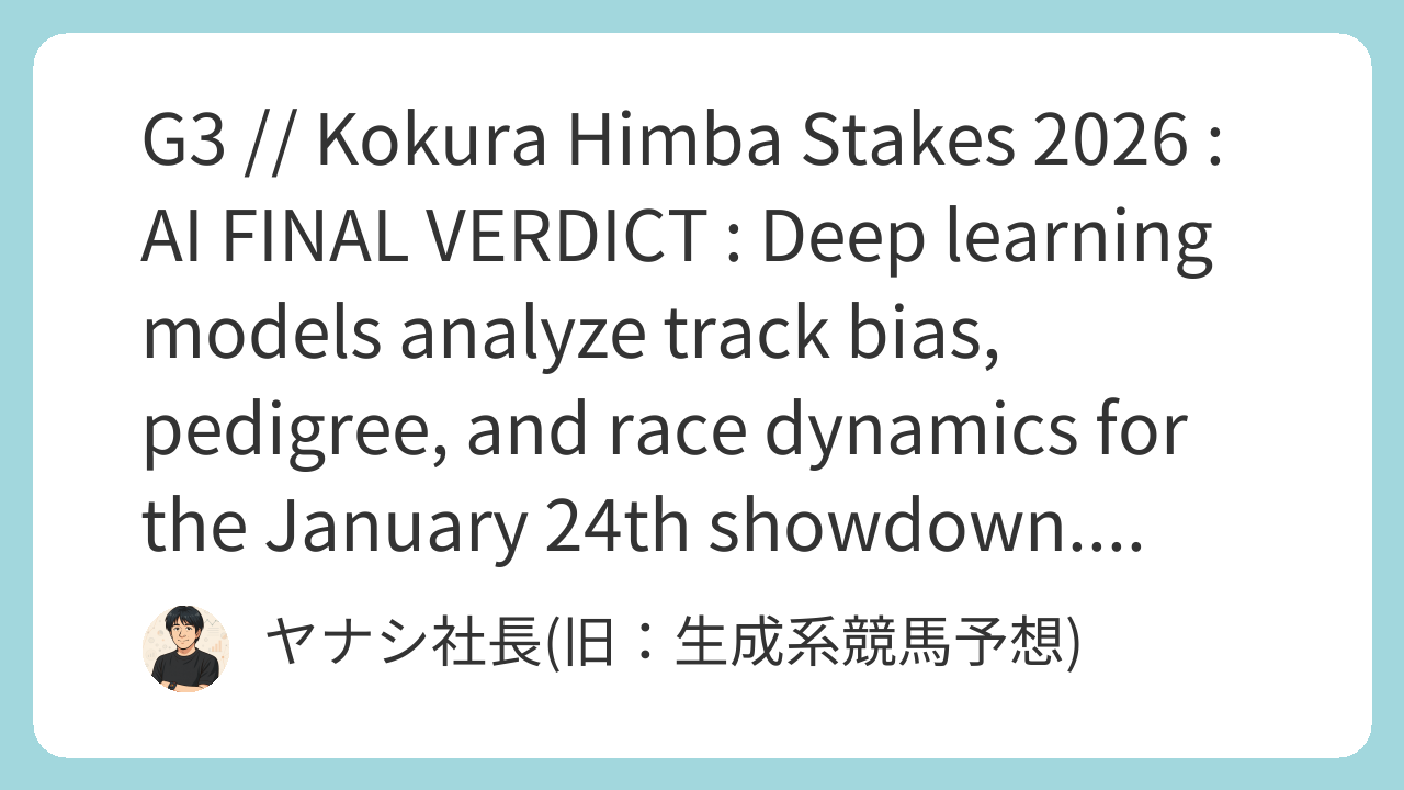 After integrating all data points—pedigree, course suitability, recent form, and jockey assignments—the AI has computed its final recommendations for the 2026 Kokura Himba Stakes.