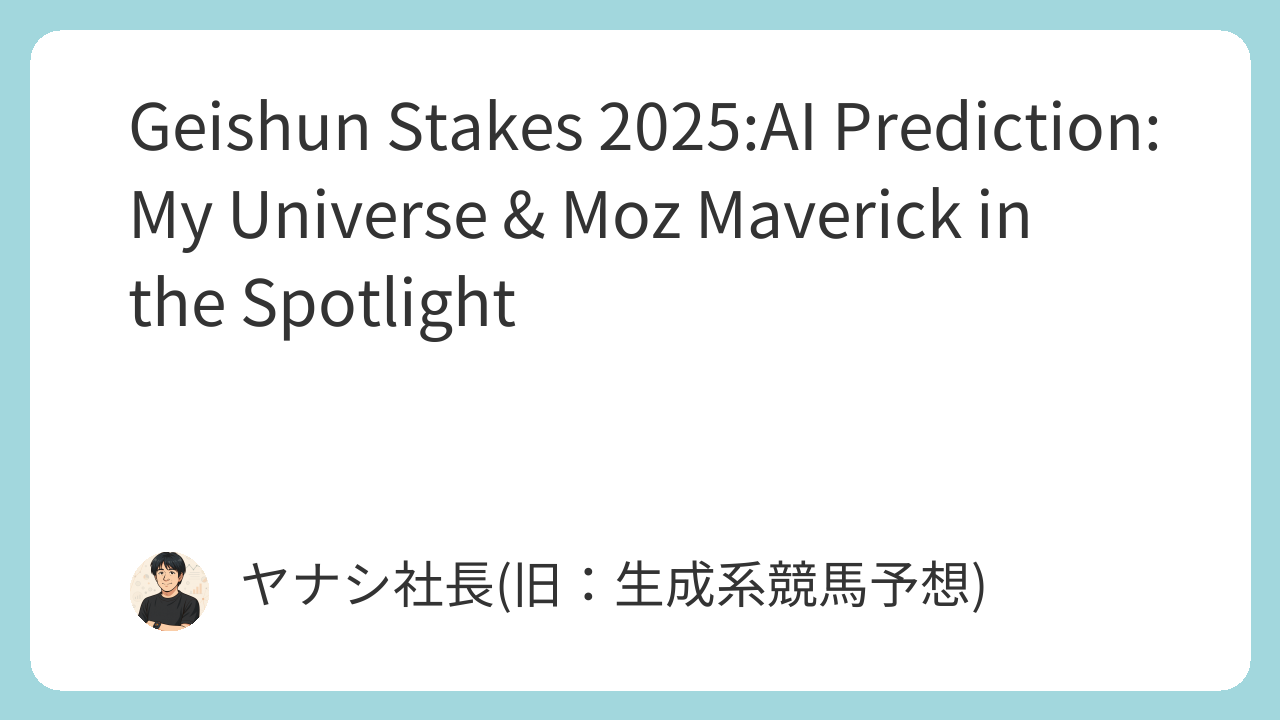 This year’s Geishun Stakes sees My Universe leading the pack in both実績 and course suitability. For supporting roles, keep a close eye on the AI’s high-value pick, Moz Maverick, and the gritty Meiner Laurier.