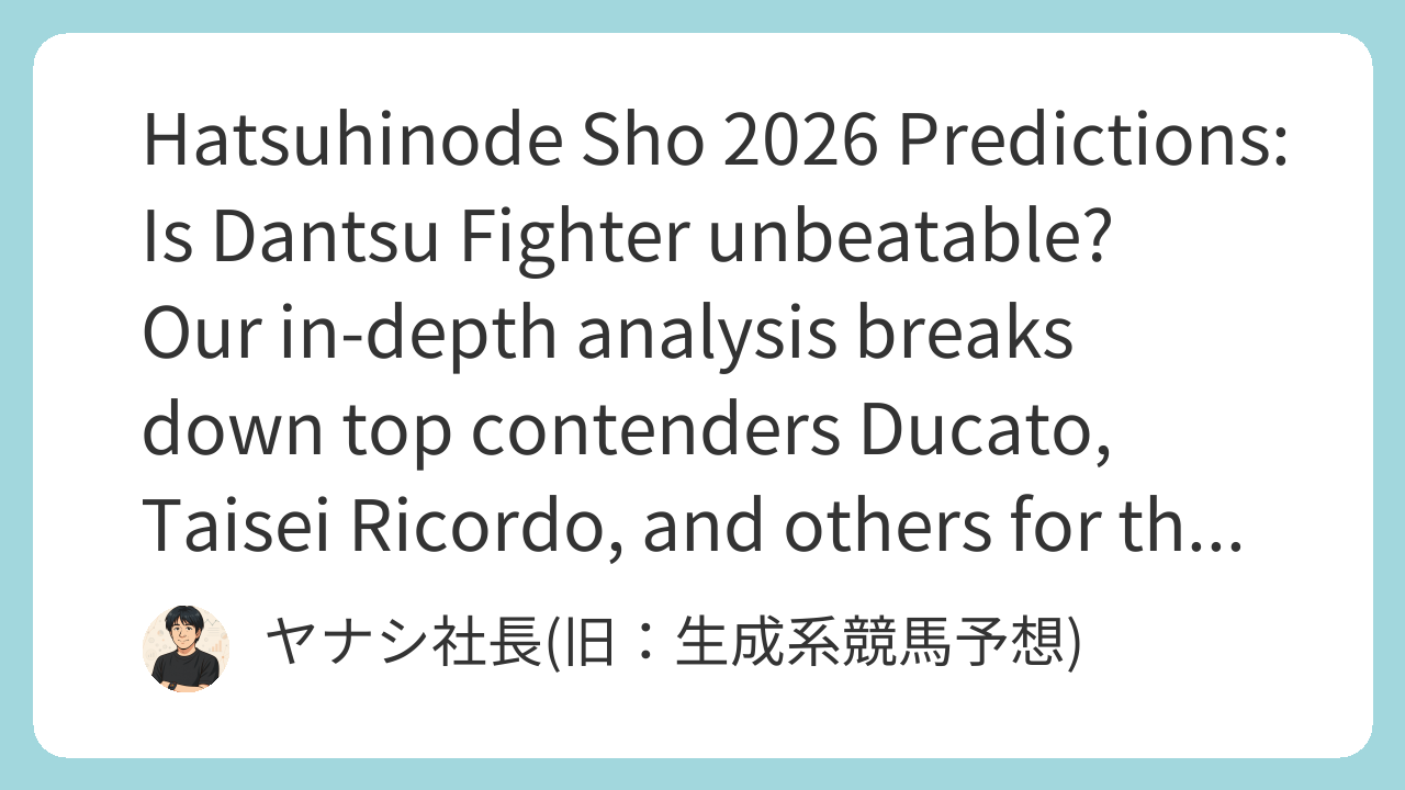 While the Hatsuhinode Sho is shaping up to be a competitive race, Dantsu Fighter appears to have a slight edge based on a combination of recent stability and impressive training. However, a rebound from Ducato or a strong return from a talented horse like Taisei Ricordo cannot be ruled out.