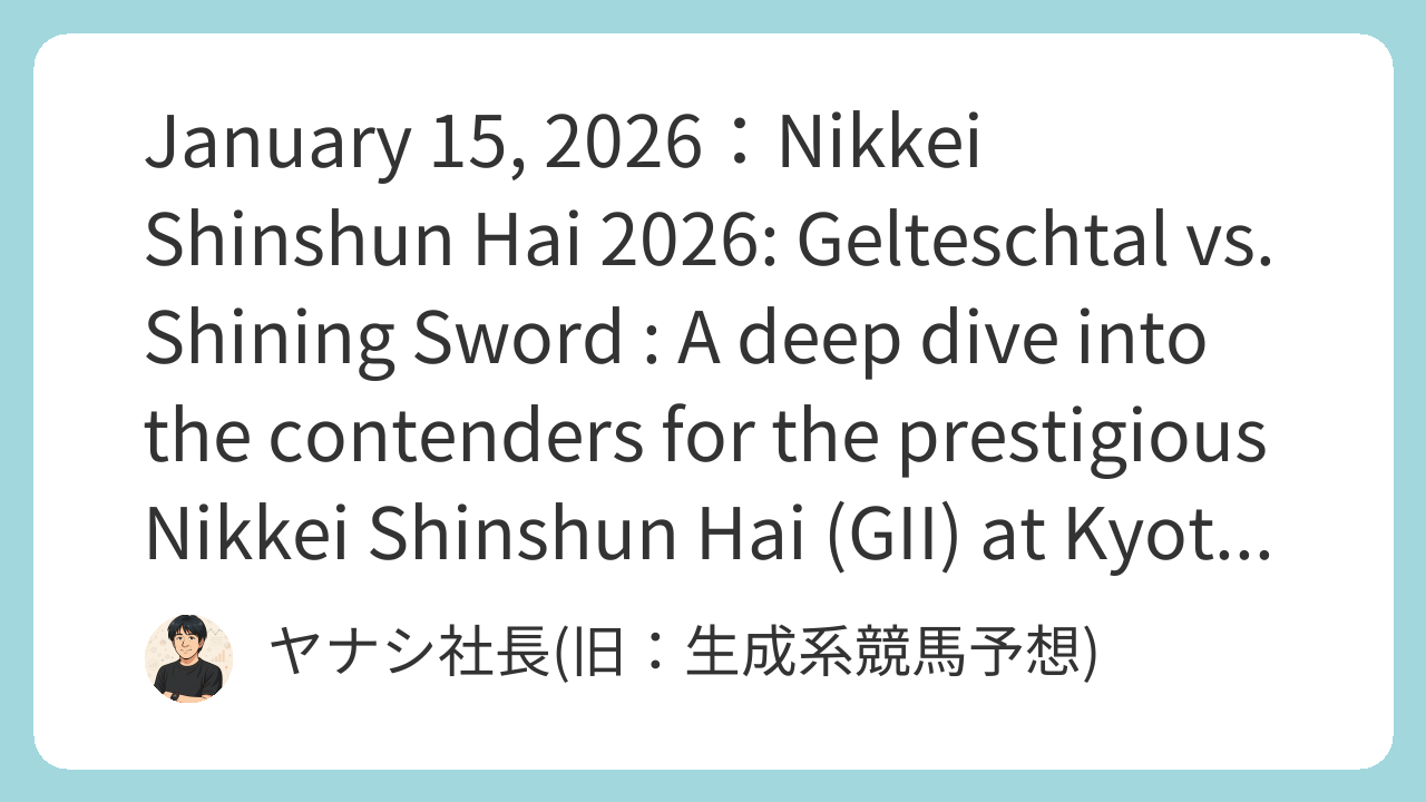 The Nikkei Shinshun Hai is a traditional Grade II race that signals the start of the middle-to-long distance season for older horses. This year, a competitive field of 13 gathers at Kyoto Racecourse over 2400m (outer turf). The handicap weights and adaptability to the tough winter turf will be key factors in determining the winner.