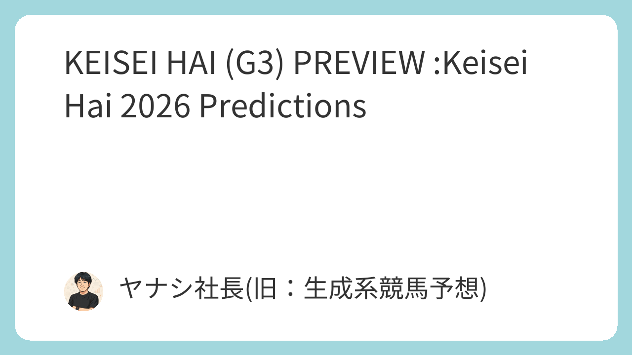 AI Predicts the Keisei Hai 2025 Winner!Keisei Hai 2025: Pre-Race WorkoutsNakayama Racecourse Access GuideBeginner’s Guide to Data Analysis