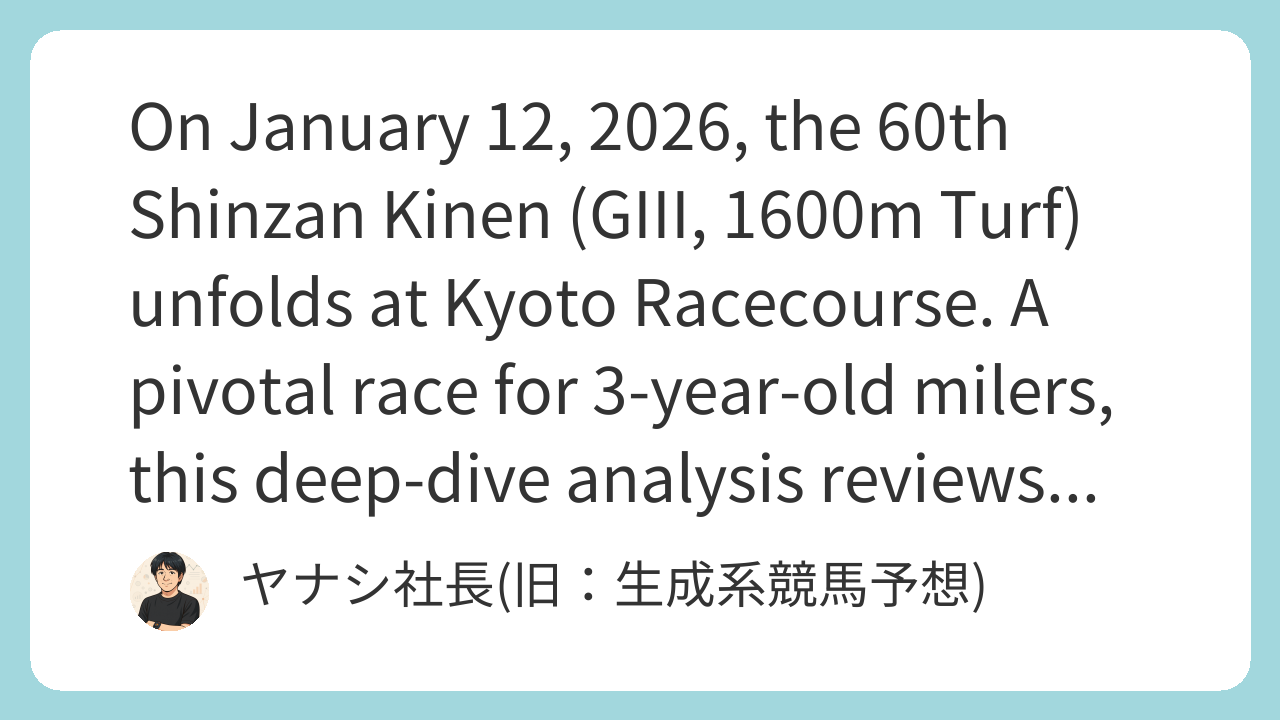 Traveling from Miho, Thunderstruck is showing remarkable improvement. In his final workout on Jan 8, he easily outpaced Freccia by 0.4 seconds. Notably, he trained with cheekpieces, which appeared to boost his concentration. He is scheduled to race with blinkers, suggesting a strong focus is expected.