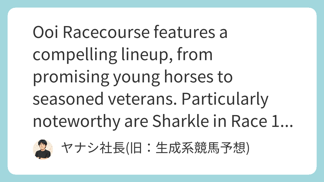 Today’s Ooi Racecourse features a compelling lineup, from promising young horses to seasoned veterans. Particularly noteworthy are Sharkle in Race 1 and Tintoretto in Race 11. This analysis provides an in-depth look at six carefully selected horses based on data and insider information.