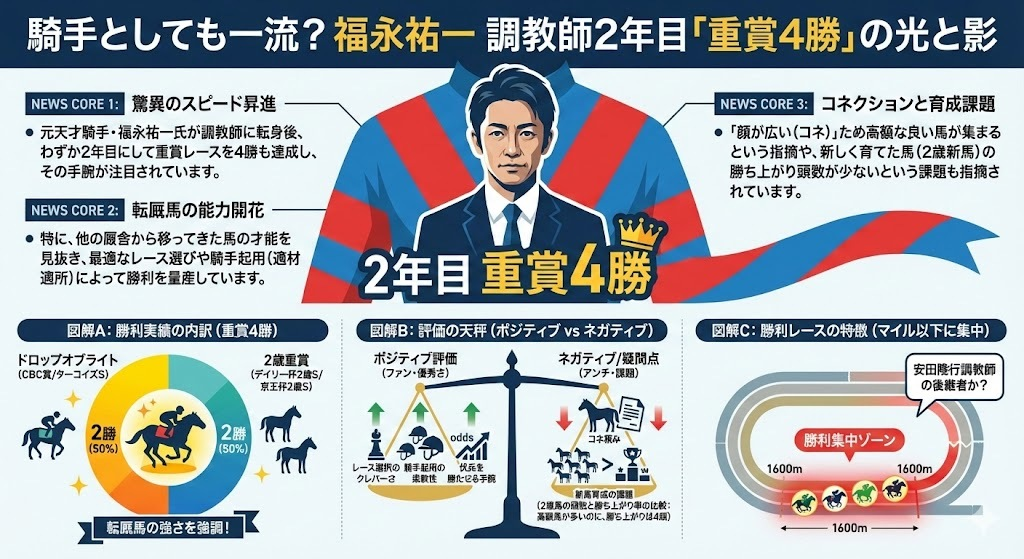 福永祐一調教師が2年目で重賞4勝の快進撃!「天才」評価の裏で囁かれる「コネ」と新馬育成への疑問